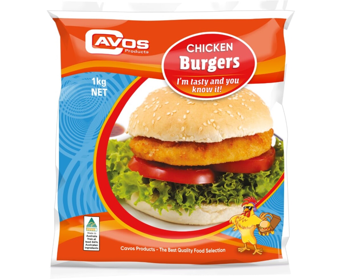 An assize favourite of chicken fillets made into a burger. That's fits straight onto a burger patty with a slight overhang over the bun, so the burger looks great. With a soft texture and golden crunchy crumb this burger is delicious. These burgers are packed in a large one kilo bags with approximately 10 burgers in a bag. These Chicken burgers are made for a family in a big bag. You can meal prep for two or three nights by purchasing your burger fillings and create a chicken burger night within minutes. Each bag contains around 10 burgers which will create 10 Chicken burger complete meals. Keep it simple and make a chicken mayo burger, add some lettuce or tasty cheese to throw in a few more flavours. Serve with Hot chips or as a meal with mashed potatoes and vegetables. Perfect to cook in a modern day air fryer, or shallow fry, deep fry, oven roast, and if you're in a rush cook in the microwave. The best chicken burger made in Australia is right here at Cavos Products.