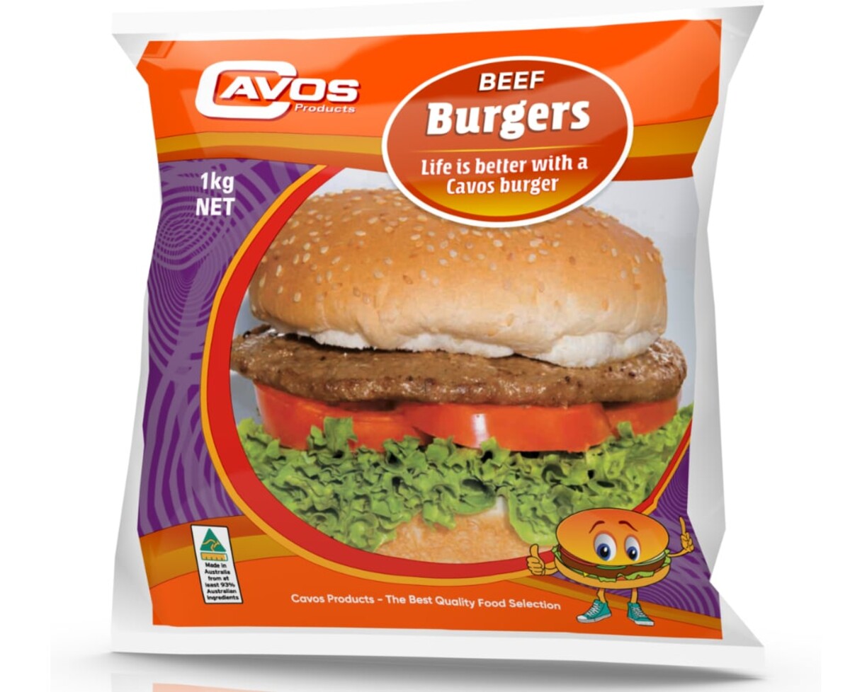 100% Australian Grown beef selected and ground to perfection to make beef burgers. An easy way to make hamburgers at home. This is how to prepare a Beef Hamburger for the perfect BIG snack. Our quick recipe includes fresh burger buns, lettuce, tomato, sliced cheese, pickle, Burger sauce and a Cavos Big Beef Burger Pattie to finish this awesome burger. We call it the best beef burger you will ever eat! Easy to make, its quick, its tasty and made with real beef. Beef Burgers are available in a handy pack to prepare as many ultimate red meat juicy burgers to enjoy. It's the secret burger hack that goes well with a side of fries, or turn it into a Cheese Burger. Our Burgers are grilled to perfection - perfect for you to finish on the BBQ, Hotplate, frying pan, oven, air fryer or microwave - ready in minutes.