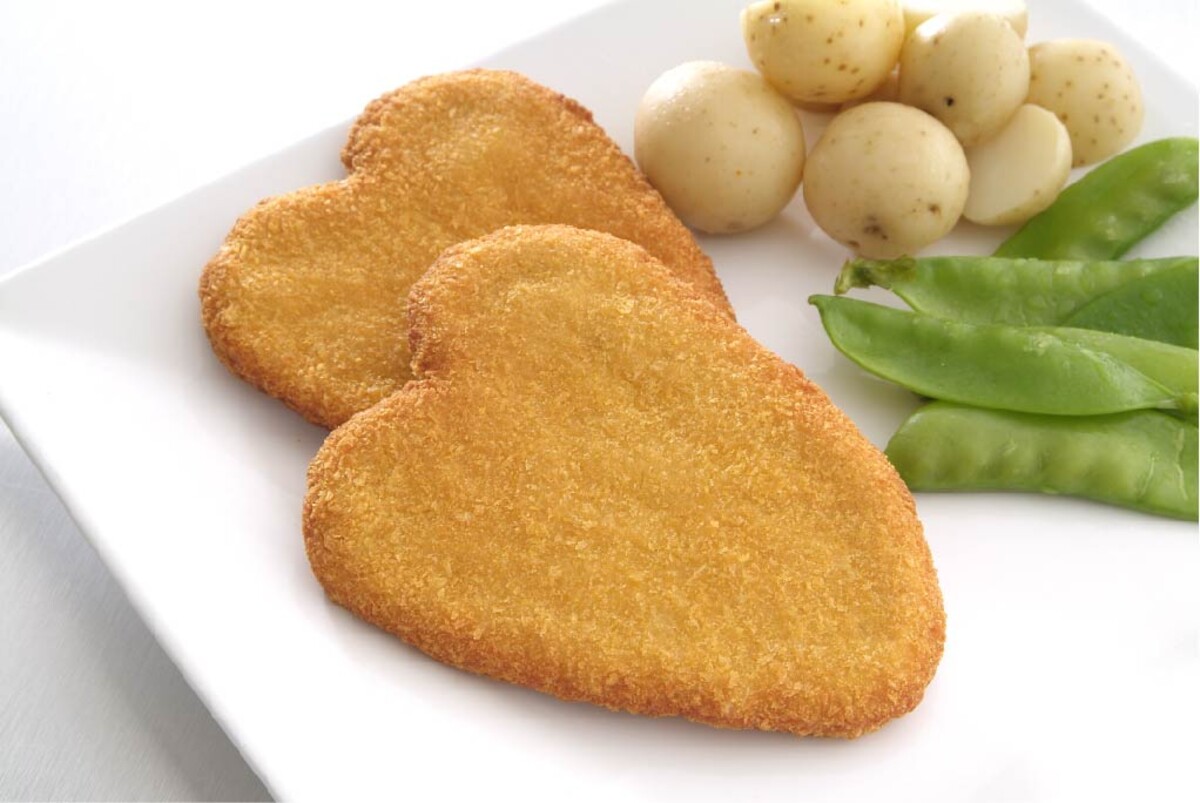 The Chicken Heart shaped schnitzels are a popular loving schnitzel. They are tossed in our famous spices and blended to create the amazing schnitzel. To cook these schnitzels, we recommend shallow frying or deep frying. Pop these frozen in the deep fryer and wait till they start to float, then you can serve with Chips and a salad, mash potato and gravy, or on a chicken schnitzel roll as some suggestions. Each of these schnitzels are the same size and weight, so portioning is spot on, and you can control your menu. The FBS are fantastic value for money with 25 schnitzels per carton. They cook presenting with a golden schnitzel appearance. Great for large functions, catering, bistros, special menus, buffets, take away shops. This is perfect chicken Breast Schnitzel portion is ready for a centre plate meal that won't disappoint.